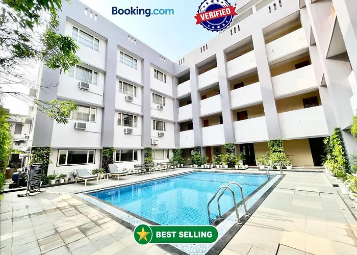 The 4-star Swimming Pool Hotel R - B Premium Puri offers proximity to the Bhai Himmat Singh Memorial Children Park, situated approximately a 10-minute drive away. This Puri hotel features safety facilities including a safety deposit box.